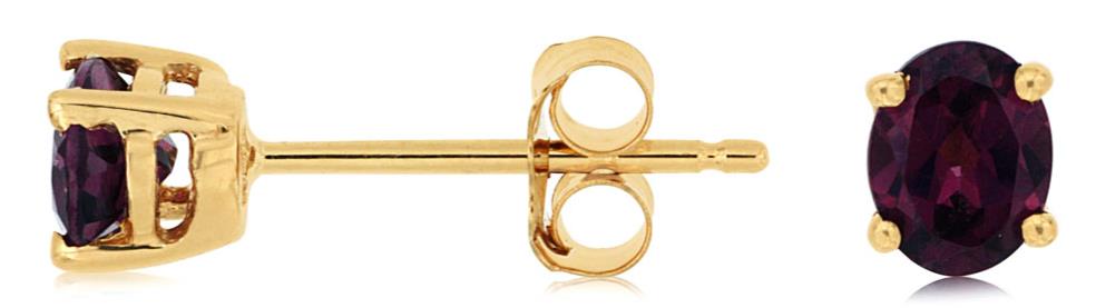 ESTATE 14KT YELLOW GOLD STUD EARRINGS. 3D CLASSIC DESIGN. AAA EXTRA FACETED OVAL RHODOLITES ARE .90 CARATS. WRITTEN APPRAISAL AVAILABLE. COMES IN A PRESENTABLE GIFT BOX.