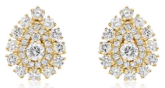 ESTATE 14KT YELLOW GOLD STUD EARRINGS. 3D CLUSTER TEAR DROP DESIGN. DIAMONDS ARE F/G COLOR, VSSI CLARITY .90 CARATS. WRITTEN APPRAISAL AVAILABLE. COMES IN A PRESENTABLE GIFT BOX.