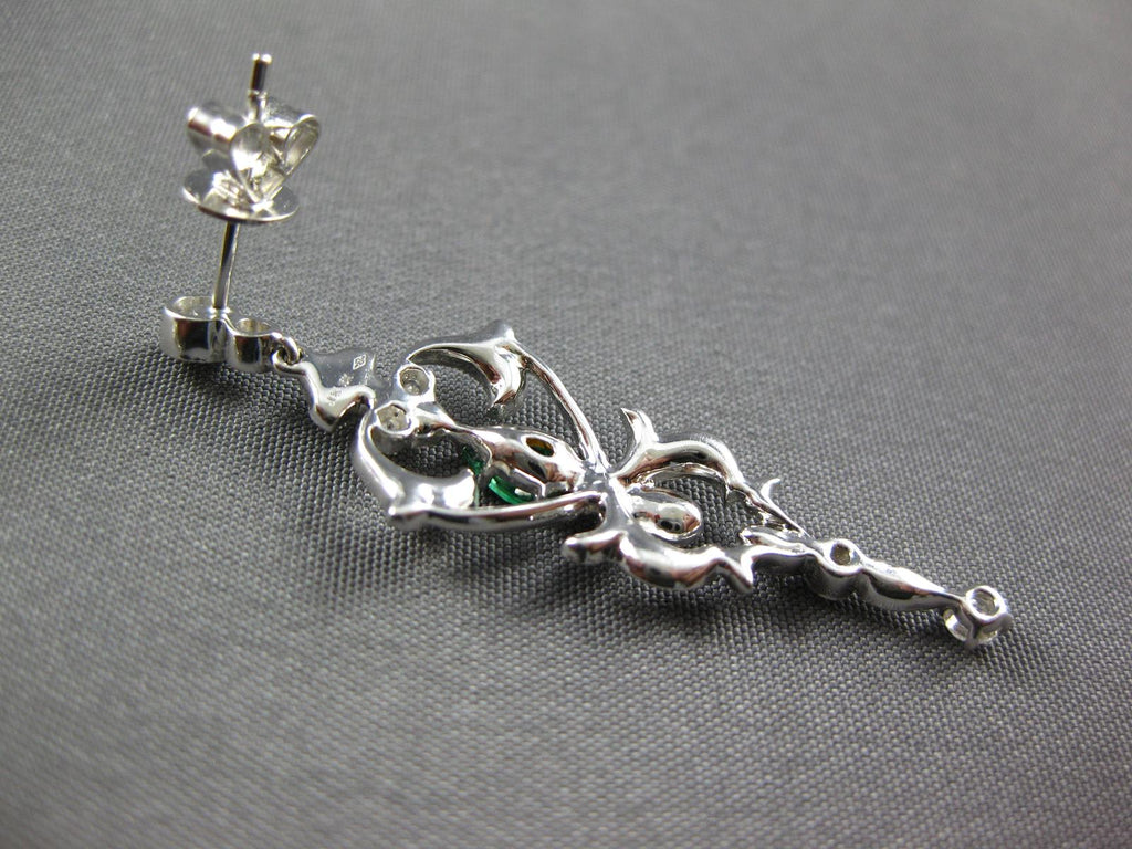 ESTATE .90CT DIAMOND & AAA EMERALD 18KT WHITE GOLD FILIGREE CHANDELIER EARRINGS