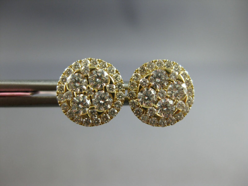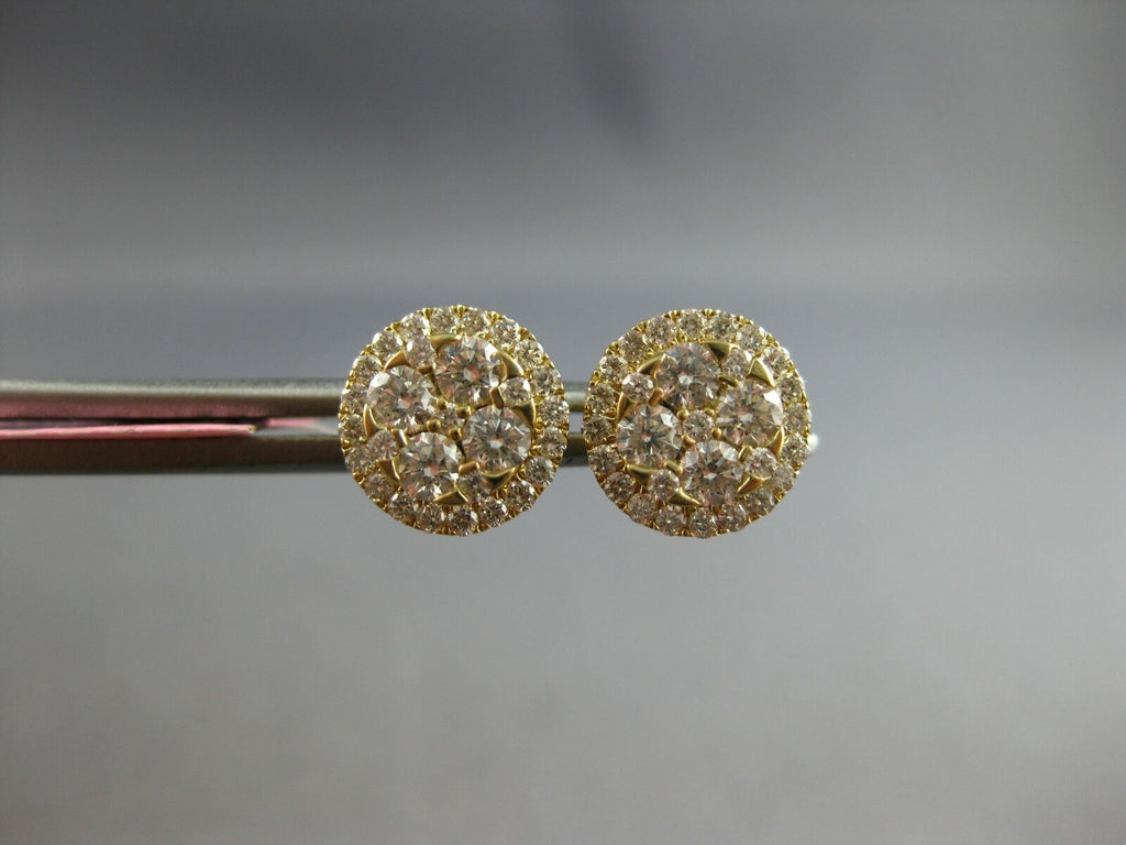 ESTATE .92CT DIAMOND 14K YELLOW GOLD 3D CLASSIC ROUND CLUSTER HALO STUD EARRINGS