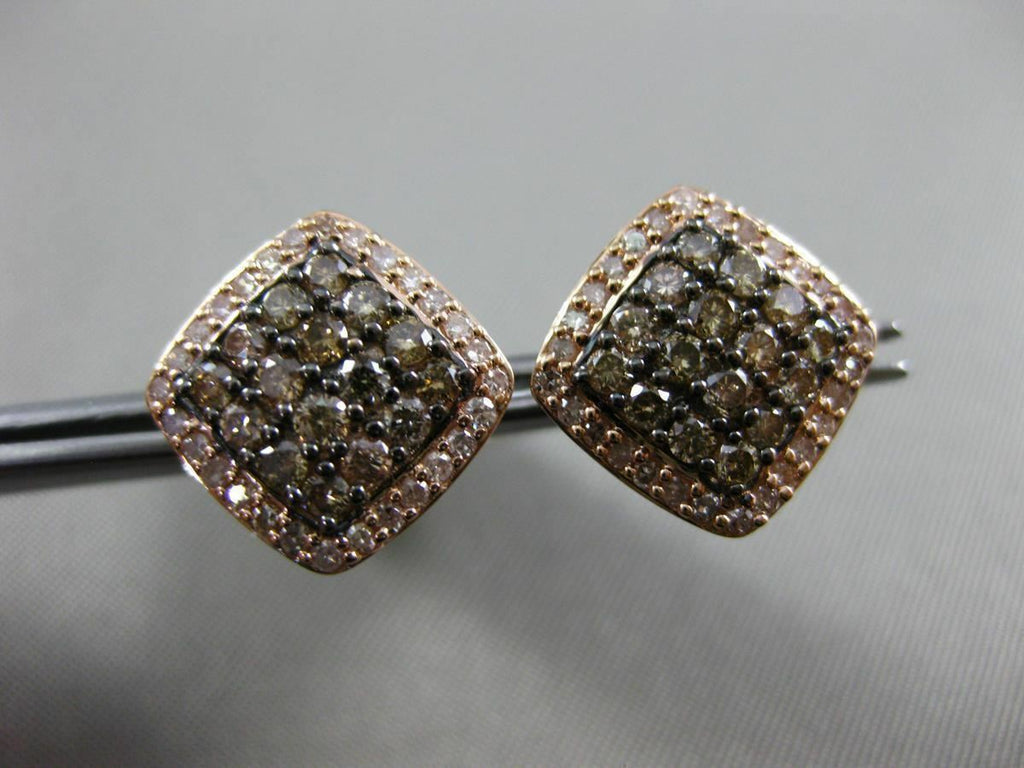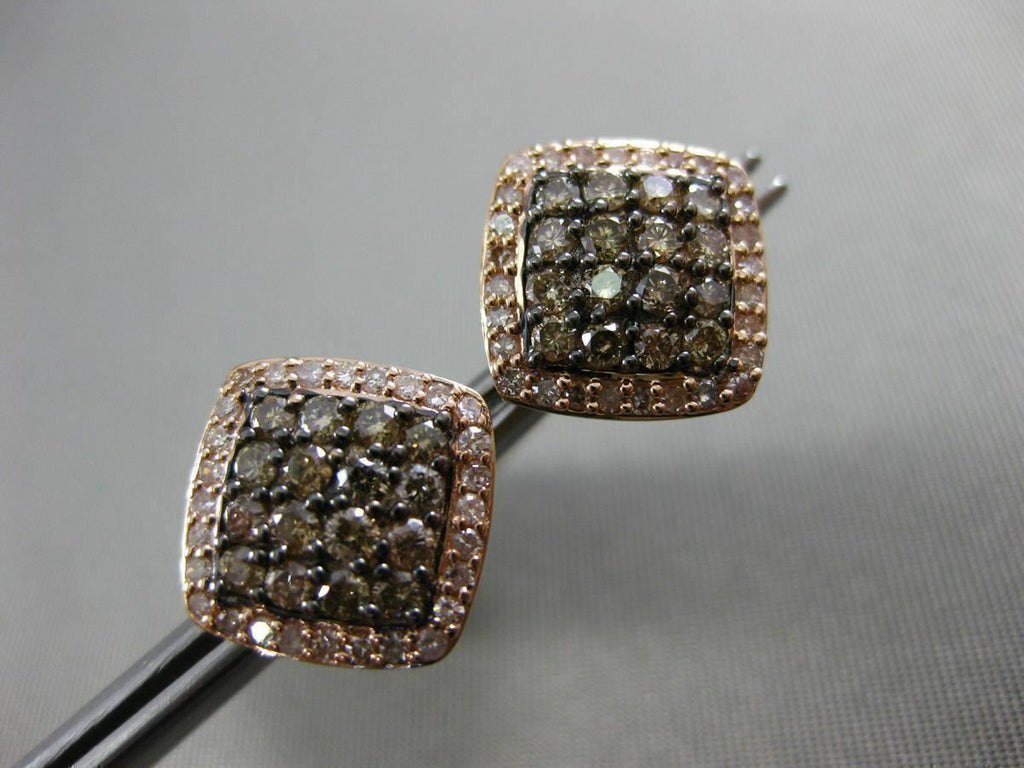 ESTATE .92CT WHITE CHOCOLATE FANCY DIAMOND 14K ROSE & BLACK GOLD SQUARE EARRINGS
