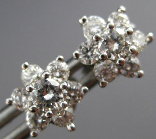 ESTATE 14KT WHITE GOLD STUD EARRINGS. 3D STAR FLOWER CLUSTER DESIGN. DIAMONDS ARE F/G COLOR, VVS/VS CLARITY .94 CARATS. MEASURES 8.5mm WIDE. WRITTEN APPRAISAL AVAILABLE. COMES IN A PRESENTABLE GIFT BOX.