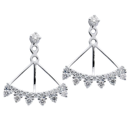 ESTATE 18KT WHITE GOLD HANGING EARRINGS. 3D MULTI FLOWER TRIANGULAR DESIGN. DIAMONDS ARE F/G COLOR, VSSI CLARITY .94 CARATS. WRITTEN APPRAISAL AVAILABLE. COMES IN A PRESENTABLE GIFT BOX.