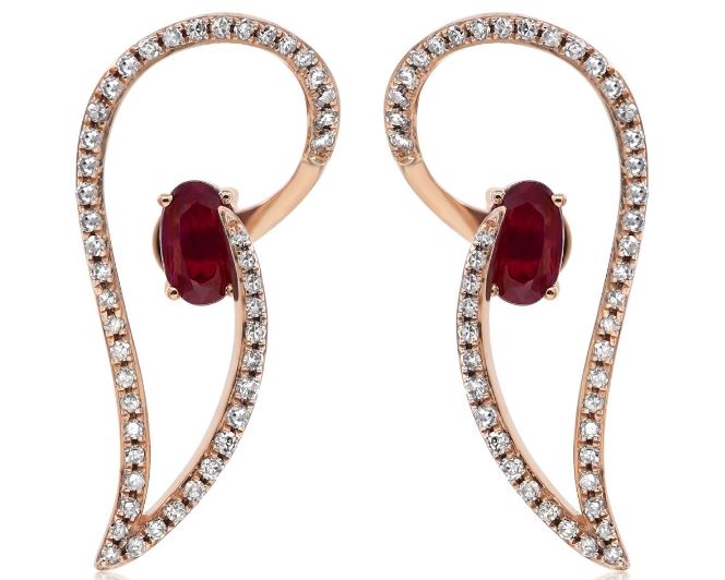 ESTATE 14KT ROSEGOLD LOVE STUDEARRINGS. 3D HEART SHAPE DESIGN. DIAMONDS ARE F/G COLOR, VSSI CLARITY .28CARATS. AAA OVALRUBIES ARE .66 CARATS.WRITTEN APPRAISAL AVAILABLE. COMES IN A PRESENTABLE GIFT BOX.