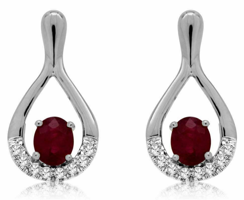 ESTATE 14KT WHITE GOLD HANGING EARRINGS. 3D TEAR DROP DESIGN. ROUND DIAMONDS ARE F/G COLOR, VSSI CLARITY .12 CARATS. AAA OVAL RUBIES ARE .82 CARATS. WRITTEN APPRAISAL AVAILABLE. COMES IN A PRESENTABLE GIFT BOX.