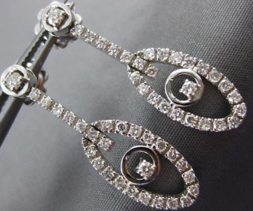 ESTATE .95CT DIAMOND 18KT WHITE GOLD OVAL PAVE FILIGREE HANGING EARRINGS #14819