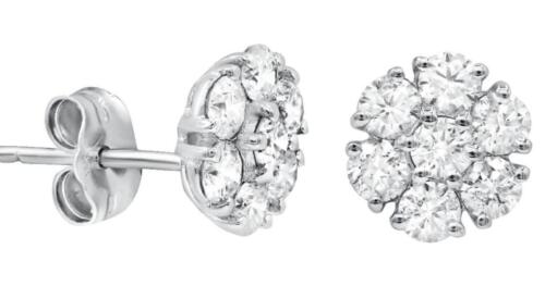 ESTATE 14KT WHITE GOLD LOVE STUD EARRINGS. 3D CLASSIC FLOWER DESIGN. ROUND DIAMONDS ARE F/G COLOR, VSSI CLARITY .98 CARATS. WRITTEN APPRAISAL AVAILABLE. COMES IN A PRESENTABLE GIFT BOX.