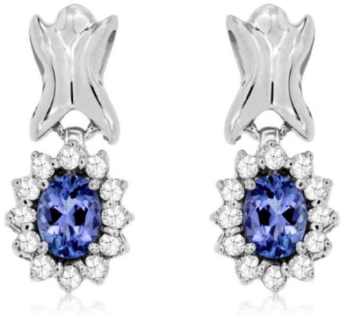 ESTATE 14KT WHITE GOLD HANGING EARRINGS. 3D CLASSIC OVAL FLOWER DESIGN. DIAMONDS ARE F/G COLOR, VSSI CLARITY .32 CARATS. AAA TANZANITE ARE .66 CARATS.WRITTEN APPRAISAL AVAILABLE. COMES IN A PRESENTABLE GIFT BOX.