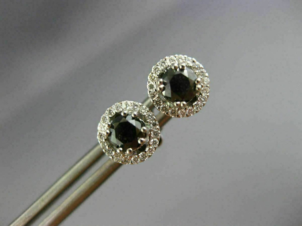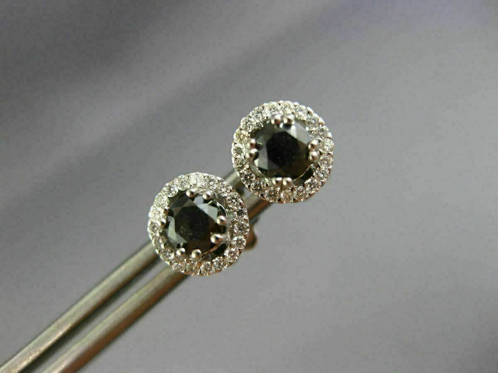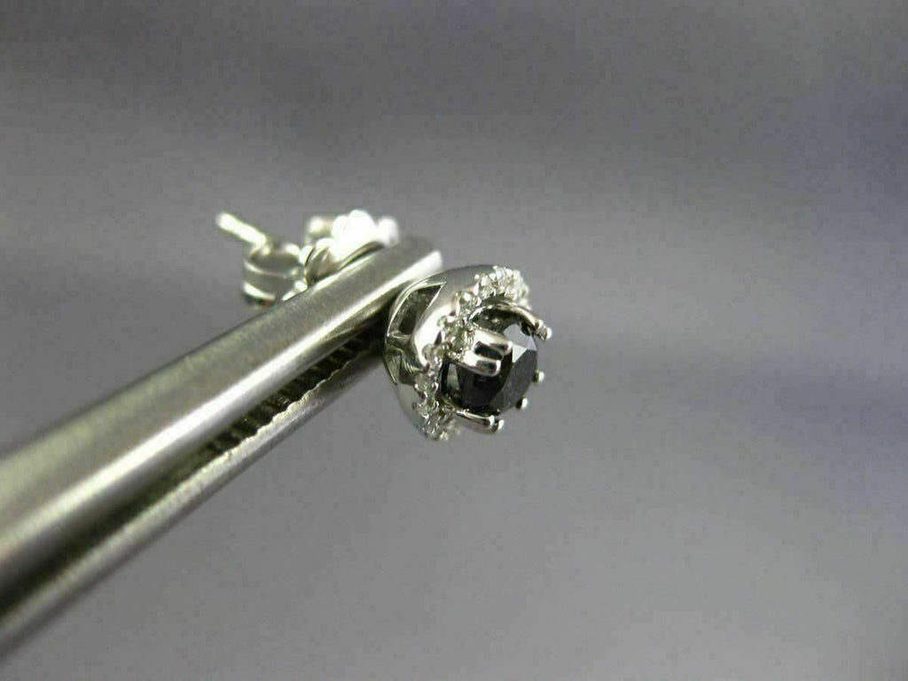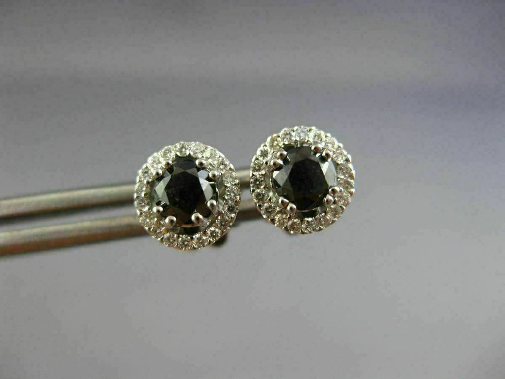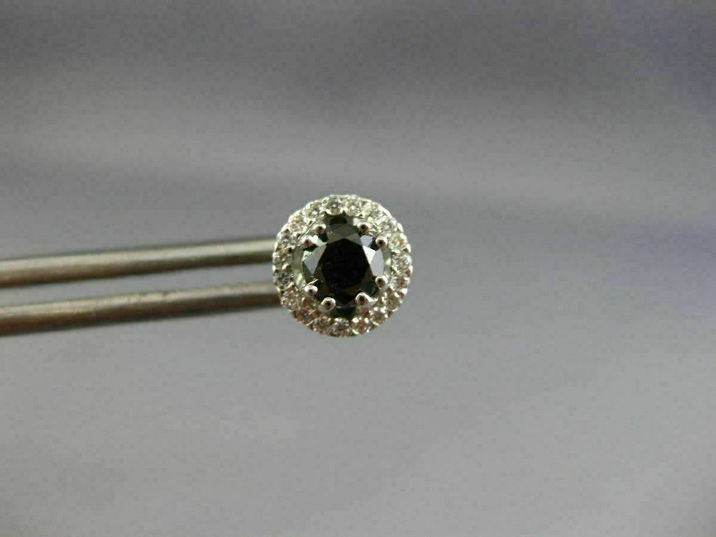 ESTATE 18KT WHITE GOLD STUD EARRINGS. 3D CLASSIC ROUND HALO DESIGN. WHITE DIAMONDS ARE F/G COLOR, VVS/VS CLARITY .18 CARATS. BLACK DIAMONDS ARE .80 CARATS. MEASURES 7MM WIDE. WRITTEN APPRAISAL AVAILABLE. COMES IN A PRESENTABLE GIFT BOX.
