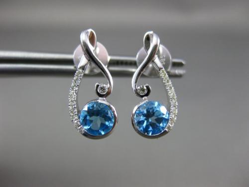 ESTATE 14KT WHITE GOLD HANGING EARRINGS. 3D INFINITY LOVE KNOT DESIGN. DIAMONDS ARE F/G COLOR, VSSI CLARITY .09 CARATS. AAA BLUE TOPAZ ARE .90 CARATS. MEASURES 16mm X 5mm. WRITTEN APPRAISAL AVAILABLE. COMES IN A PRESENTABLE GIFT BOX.
