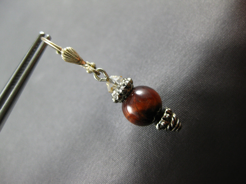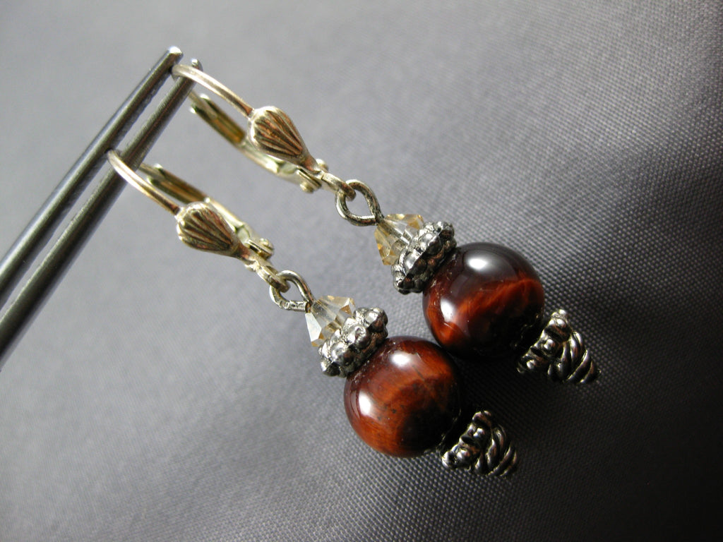 ESTATE AAA BROWN ONYX & CRYSTAL 925 STERLING SILVER HANGING EARRINGS #27096