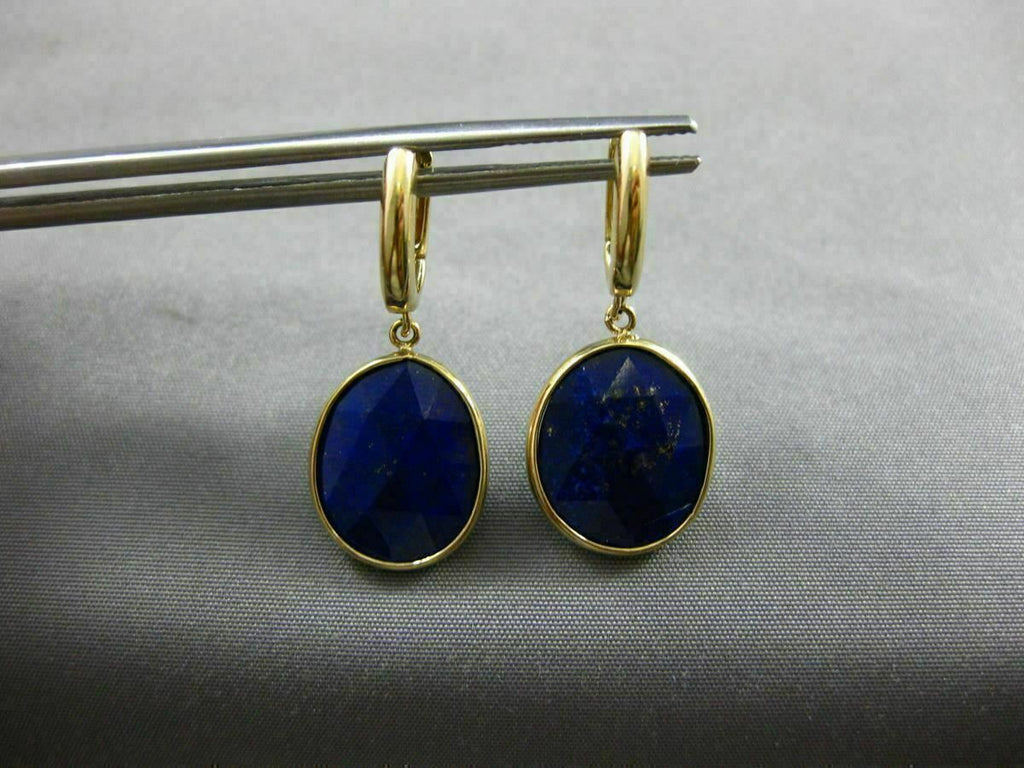 ESTATE 14KT YELLOW GOLD HANGING EARRINGS. 3D OVAL HUGGIE BEZEL DESIGN. FEATURES AAA EXTRA FACET LAPAS . MEASURES 30mm X 13mm. WRITTEN APPRAISAL AVAILABLE. COMES IN A PRESENTABLE GIFT BOX