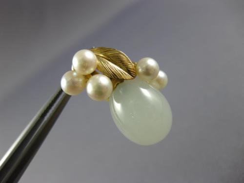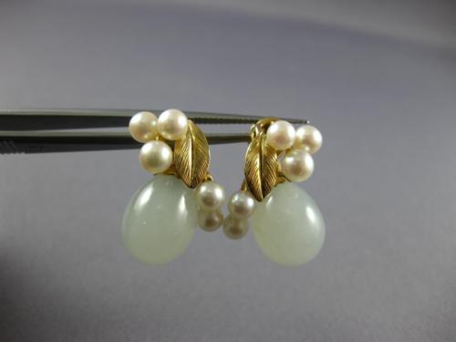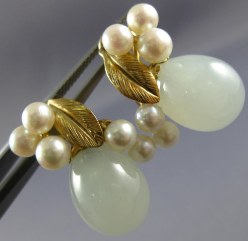 ESTATE AAA JADE & SOUTH SEA PEARL 14KT YELLOW GOLD FLOWER LEAF CLIP ON EARRINGS