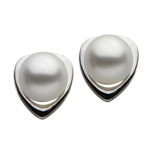 ESTATE 18KT WHITE GOLD EARRINGS. 3D CLASSIC SOLITAIRE TEAR DROP DESIGN. AAA PEARLS ARE 8-9MM WIDE. WRITTEN APPRAISAL AVAILABLE. COMES IN A PRESENTABLE GIFT BOX.