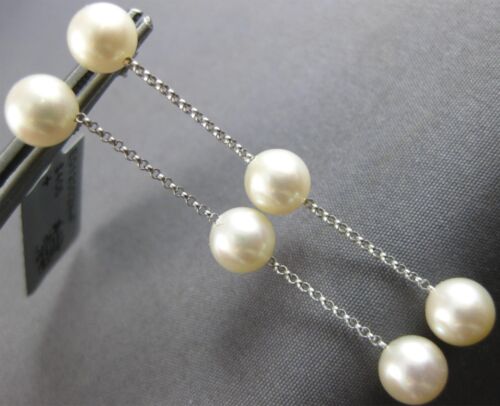 ESTATE 14KT WHITE GOLD FUN HANGING EARRINGS. 3D CLASSIC BY THE YARD DESIGN. FEATURES AAA 7mm WIDE SOUTH SEA PEARLS. MEASURES 51mm X 7mm. WRITTEN APPRAISAL AVAILABLE. COMES IN A PRESENTABLE GIFT BOX.