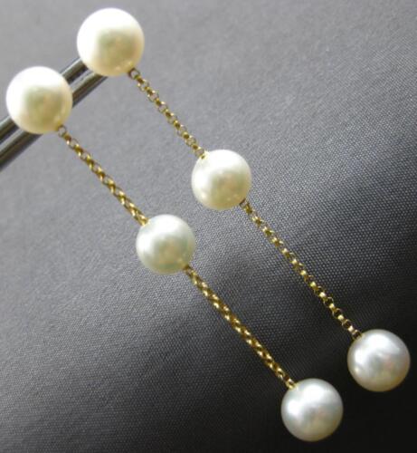 ESTATE 14KT YELLOW GOLD FUN HANGING EARRINGS. 3D BY THE YARD DESIGN. FEATURES AAA 7mm WIDE SOUTH SEA PEARLS. EARRINGS MEASURE 48.5mm X 7mm. WRITTEN APPRAISAL AVAILABLE. COMES IN A PRESENTABLE GIFT BOX.