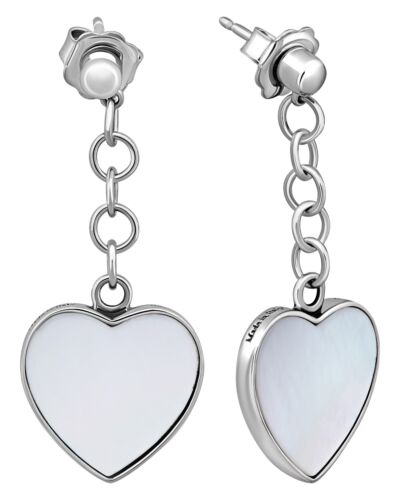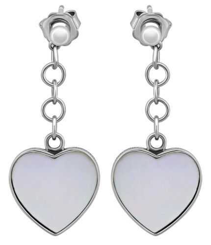 ESTATE 18KT WHITE GOLD HANGING EARRINGS. 3D HEART SHAPE DESIGN. FEATURES AAA SOUTH SEA PEARLS. FEATURES AAA 10mm MOTHER OF PEARL. WRITTEN APPRAISAL AVAILABLE. COMES IN A PRESENTABLE GIFT BOX.