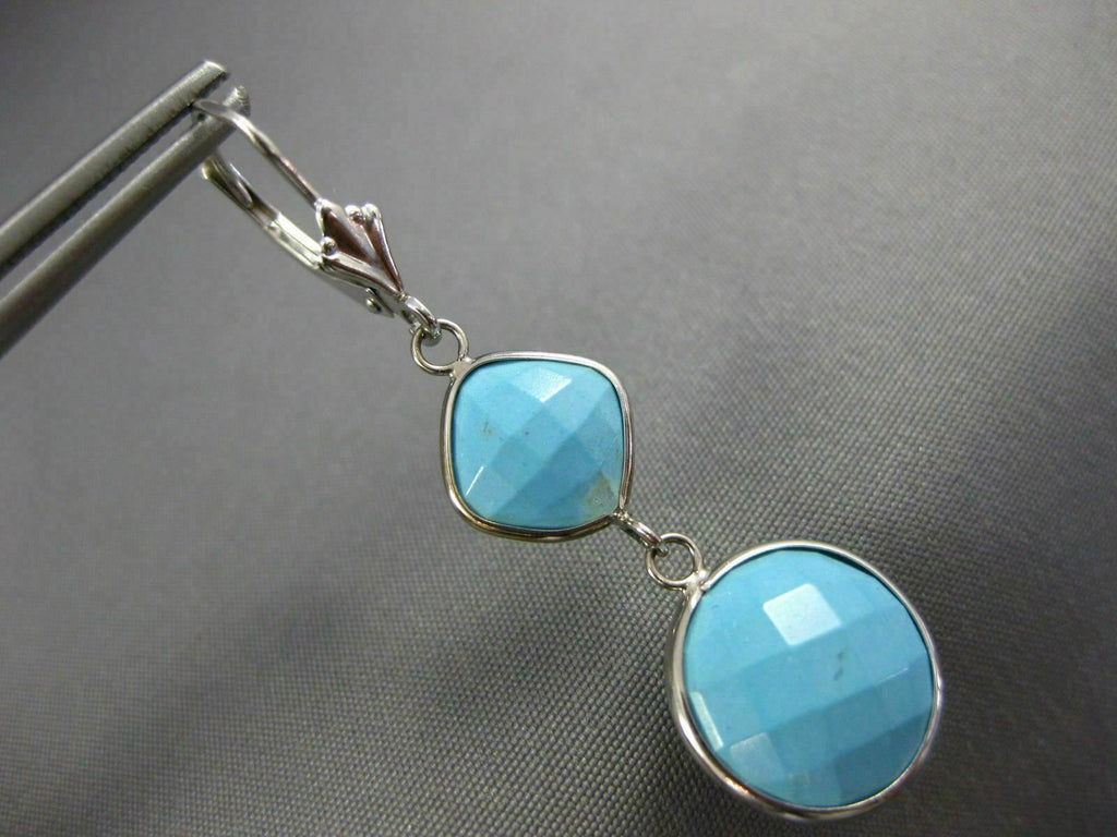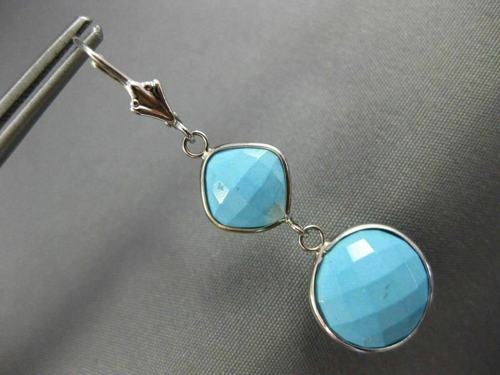 ESTATE AAA TURQUOISE 14K WHITE GOLD SQUARE AND ROUND LEVER BACK HANGING EARRINGS