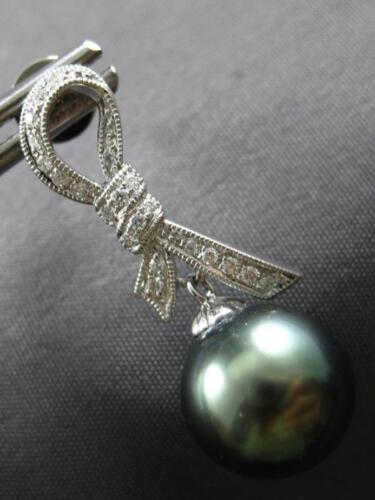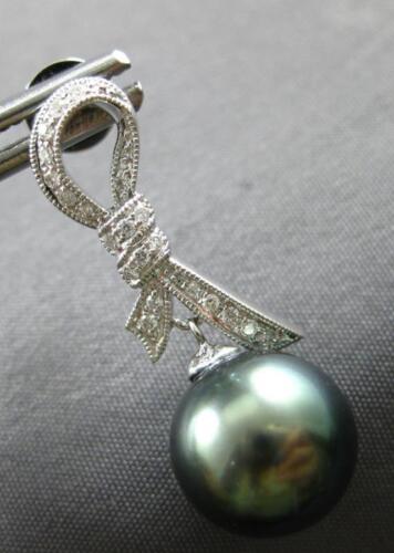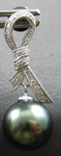 ESTATE DIAMOND .23CT & AAA TAHITIAN PEARL 18KT WHITE GOLD BOW HANGING EARRINGS