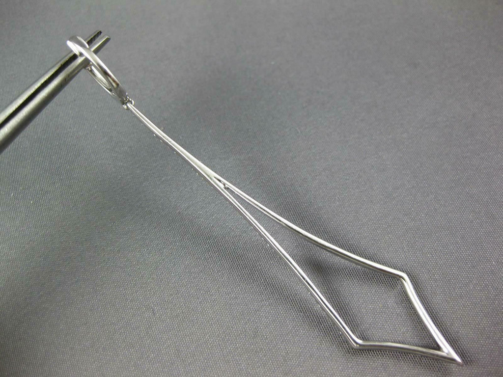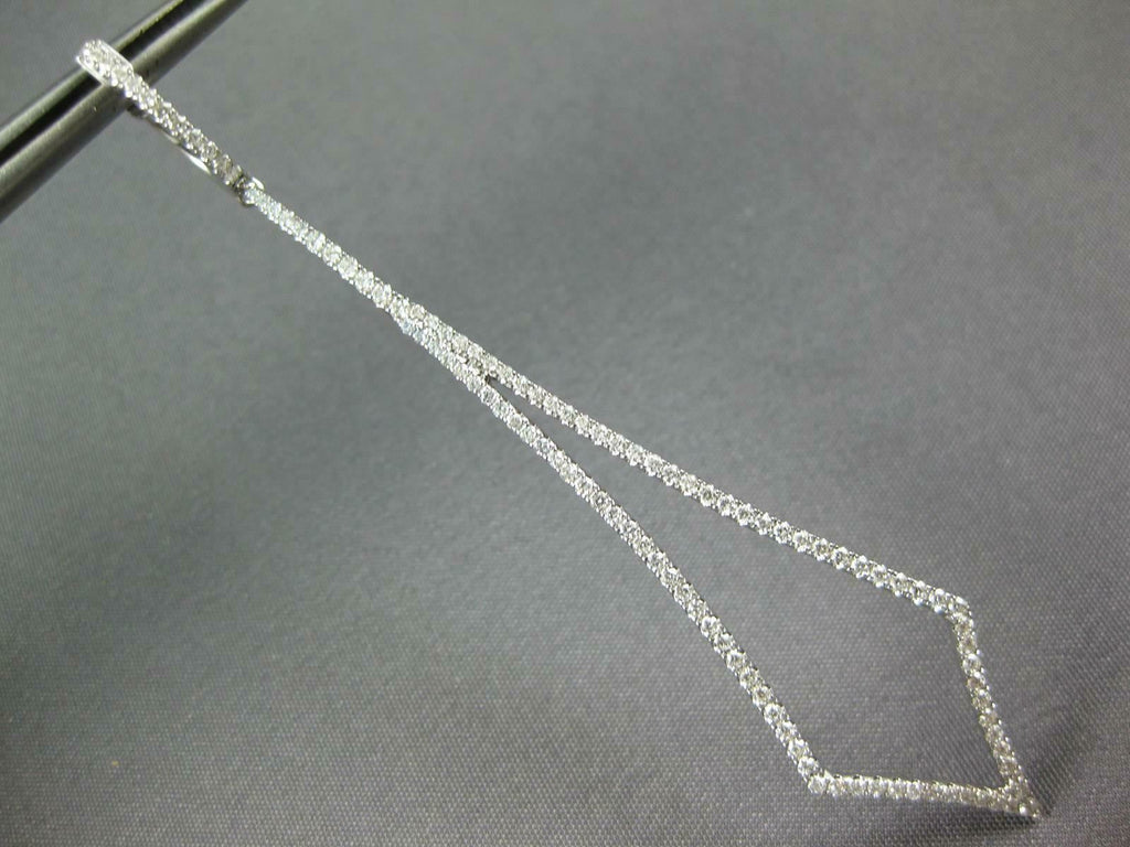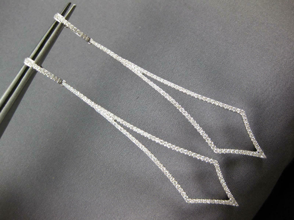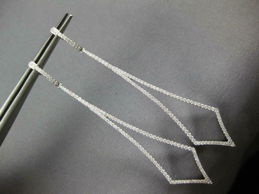 ESTATE EXTRA LARGE 18KT WHITE GOLD HANGING EARRINGS. 3D TEAR DROP TRIANGULARDESIGN. DIAMONDS ARE F/G COLOR, VSSI CLARITY 1.11 CARATS.MEASURES 75mm X 14mm. WRITTEN APPRAISAL AVAILABLE. COMES IN A PRESENTABLE GIFT BOX.