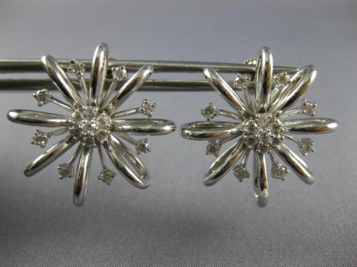 ESTATE EXTRA LARGE 1.26CT DIAMOND 14KT WHITE GOLD 3D FLOWER SNOW FLAKE EARRINGS