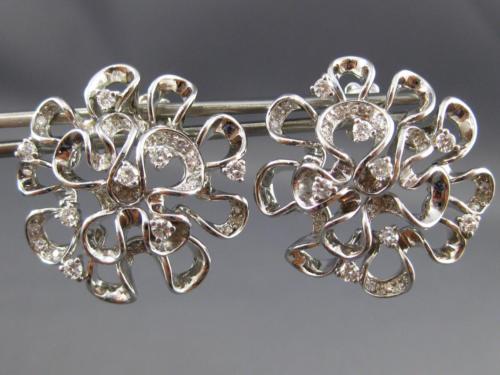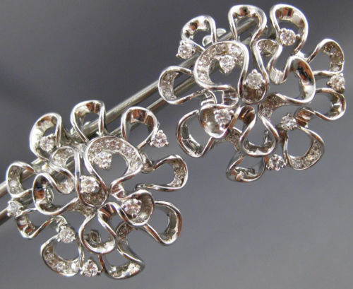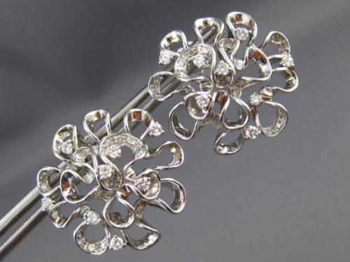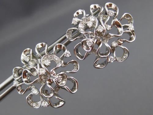 ESTATE EXTRA LARGE 1.36CT DIAMOND 14KT WHITE GOLD 3D FLOWER LOVE EARRINGS #19476
