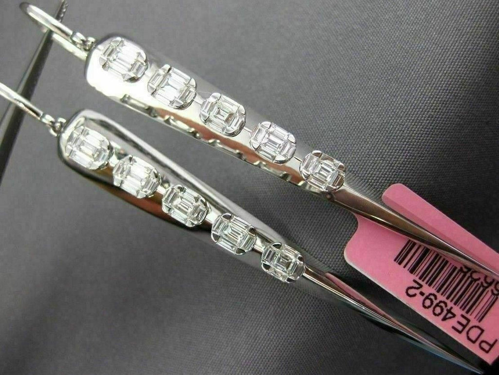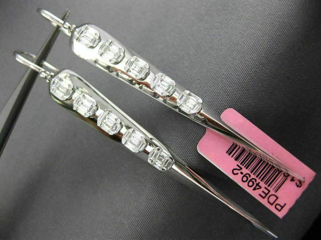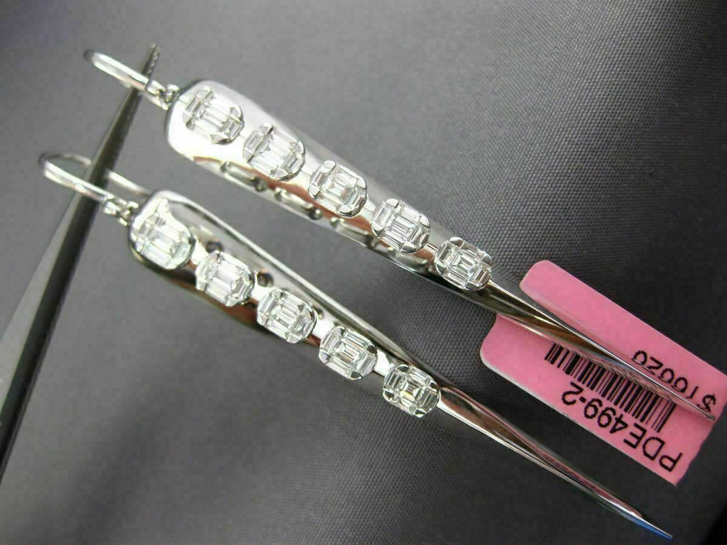 ESTATE EXTRA LARGE 18KT WHITE GOLD HANGING EARRINGS. 3D OVAL CLUSTER DESIGN. DIAMONDS ARE F/G COLOR, VSSI CLARITY, 1.69 CARATS. MEASURES 76MM X 8MM. WRITTEN APPRAISAL AVAILABLE. COMES IN A PRESENTABLE GIFT BOX.