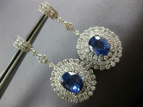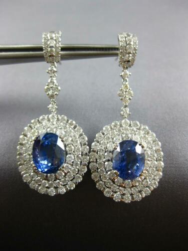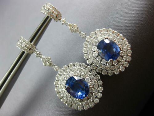 ESTATE EXTRA LARGE 18KT WHITE GOLD HANGING EARRINGS. 3D FLOWER DESIGN. ROUND DIAMONDS ARE F/G COLOR, VSSI CLARITY 4.19 CARATS. AAA OVAL FANCY BLUE SAPPHIRES ARE 7.67 CARATS. SAPPHIRES MEASURES 9.3MM X 7.7MM. EARRINGS MEASURES 38mm X 19mm. WRITTEN APPRAISAL AVAILABLE. COMES IN A PRESENTABLE GIFT BOX.