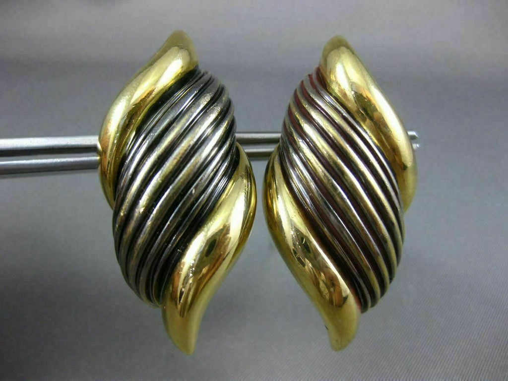 ESTATE EXTRA LARGE 18KT YELLOW GOLD CLIP ON EARRINGS. 3D LEAF SWIRL INFINITY ITALIAN DESIGN. MEASURES 41mm X 20mm. WRITTEN APPRAISAL AVAILABLE. COMES IN A PRESENTABLE GIFT BOX