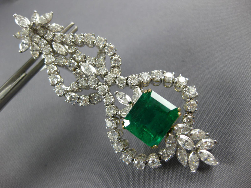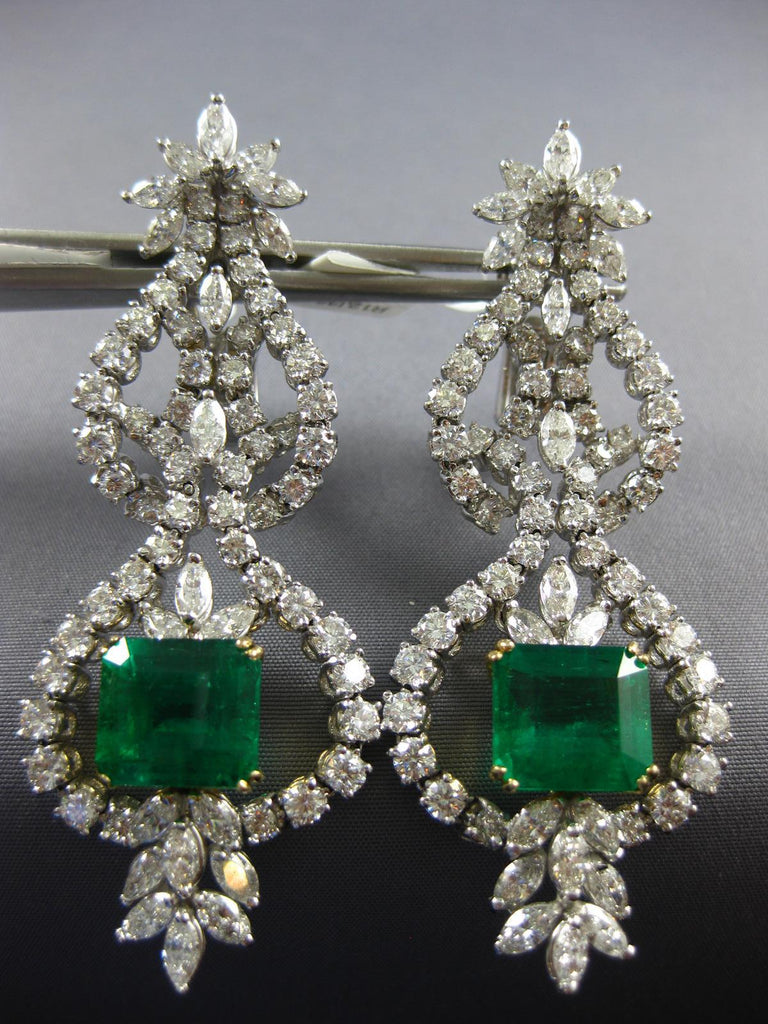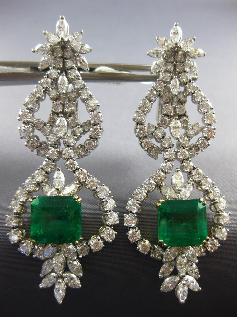 ESTATE EXTRA LARGE 19.8CT DIAMOND & AAA EMERALD 18K 2 TONE GOLD HANGING EARRINGS