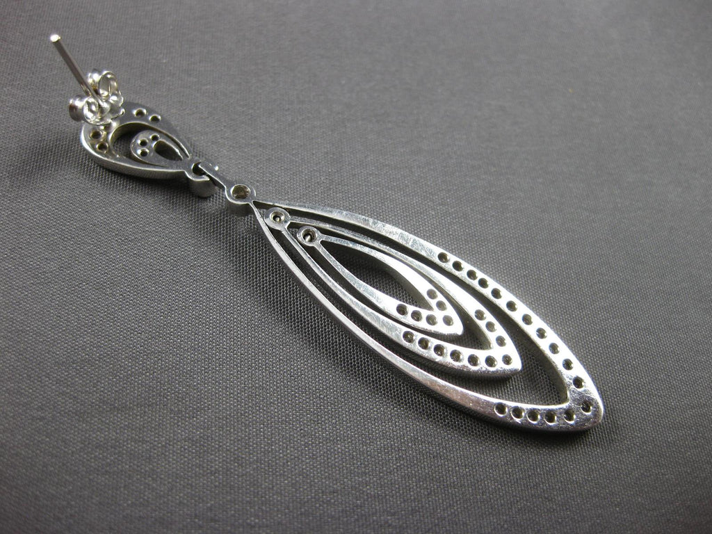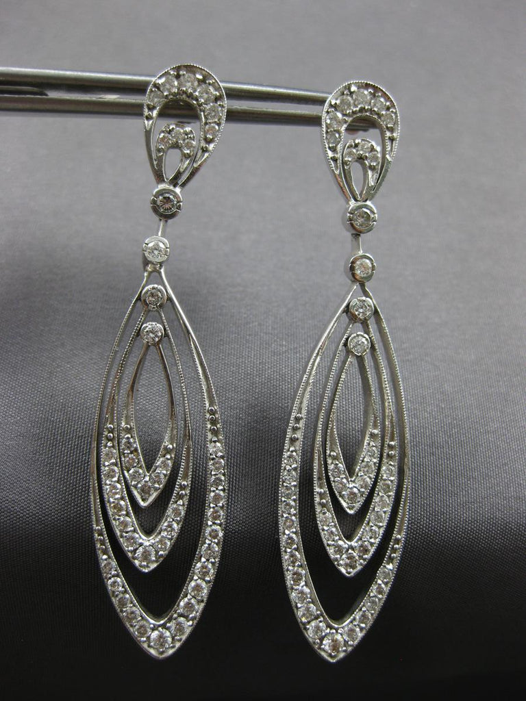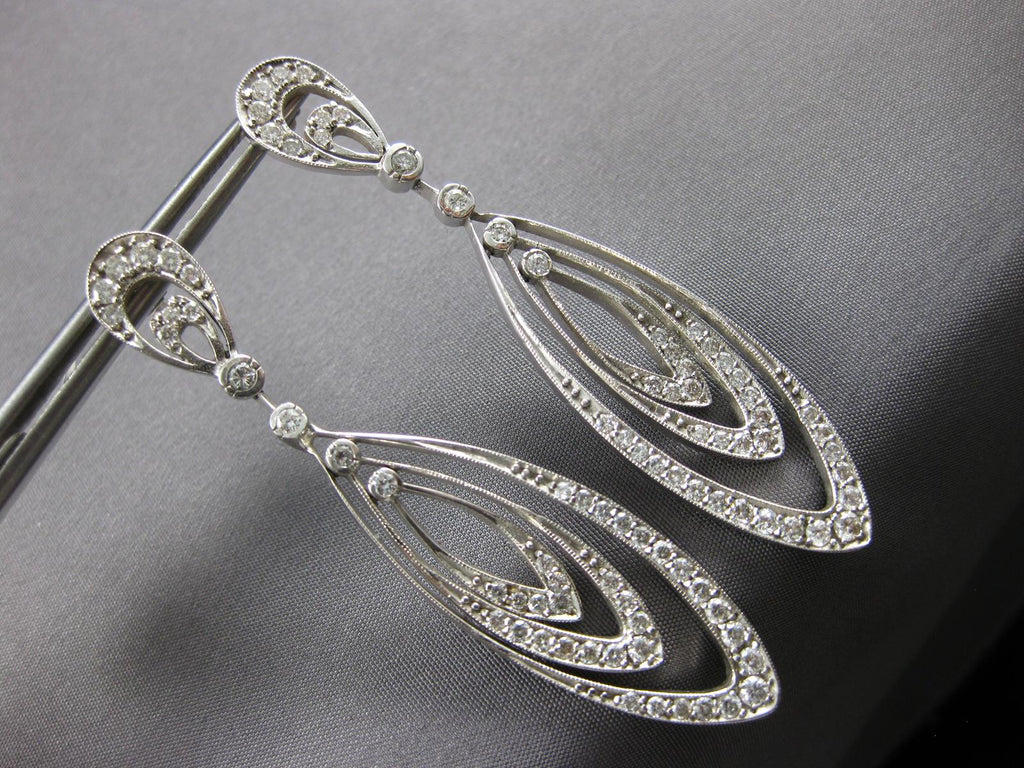 ESTATE EXTRA LARGE 2.0CT DIAMOND 14KT WHITE GOLD LEAF TEAR DROP HANGING EARRINGS