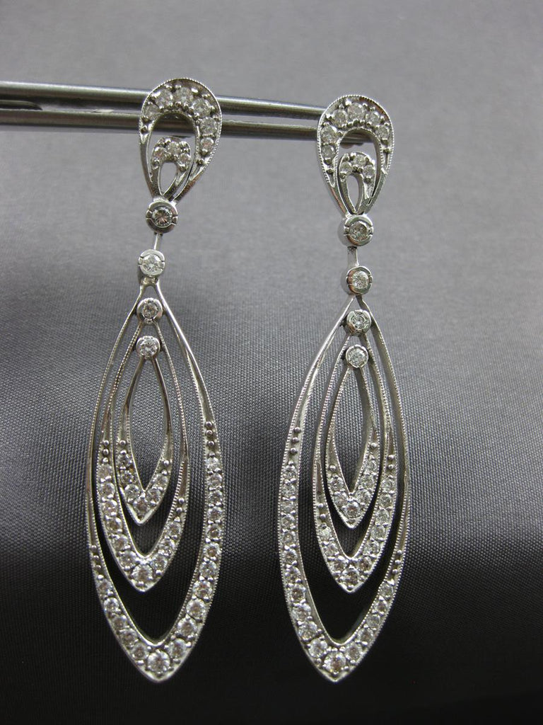 ESTATE EXTRA LARGE 14KT WHITE GOLD HANGING EARRINGS. 3D LEAF TEAR DROP DESIGN. DIAMONDS ARE F/G COLOR, VSSI CLARITY 2.0 CARATS. MEASURES 61mm X 14mm. WRITTEN APPRAISAL AVAILABLE. COMES IN A PRESENTABLE GIFT BOX.