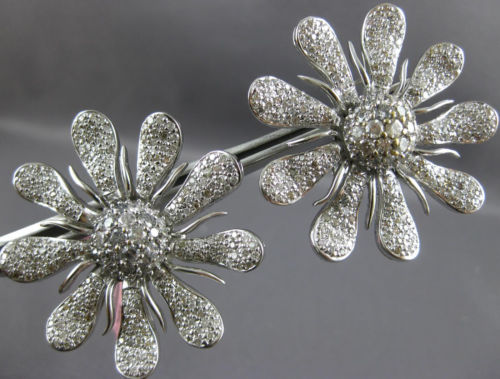 ESTATE EXTRA LARGE 5.75CT DIAMOND 18KT WHITE GOLD 3D SUN FLOWER CLIP ON EARRINGS