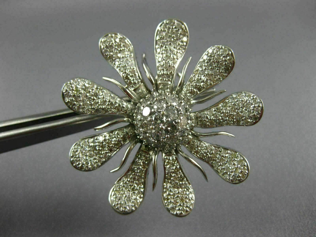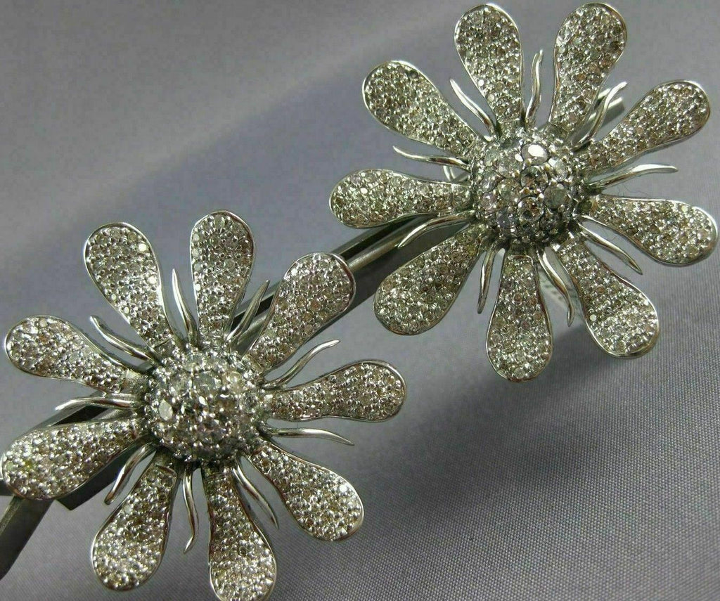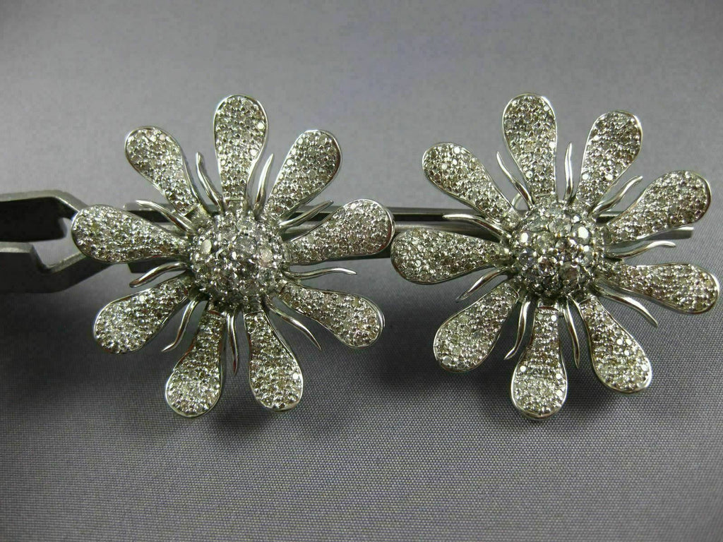 ESTATE EXTRA LARGE 6.14CT DIAMOND 18KT WHITE GOLD 3D SUNFLOWER CLIP ON EARRINGS