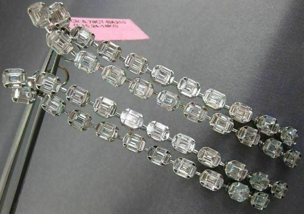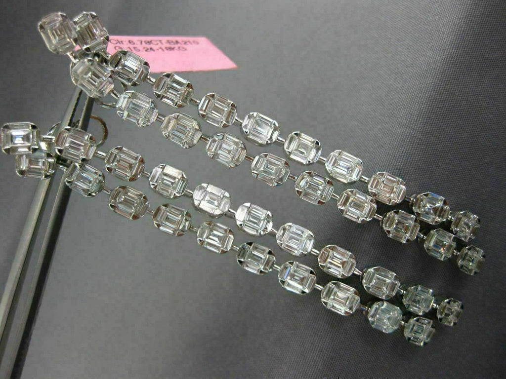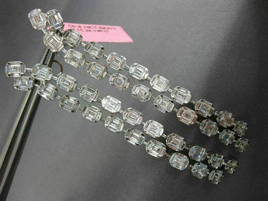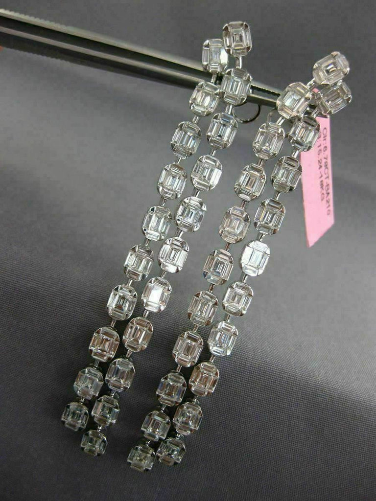 ESTATE EXTRA LARGE 6.28CT DIAMOND 18K WHITE GOLD SQUARE JOURNEY HANGING EARRINGS