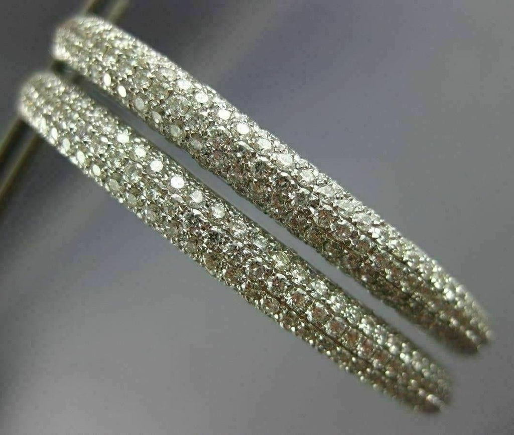 ESTATE EXTRA LARGE 18KT WHITE GOLD HANGING EARRINGS. 3D MULTI ROW DOUBLE SIDED OVAL HOOP DESIGN. DIAMONDS ARE F/G COLOR, VSSI CLARITY 7.64 CARATS. MEASURES 4mm X 43mm. WRITTEN APPRAISAL AVAILABLE. COMES IN A PRESENTABLE GIFT BOX