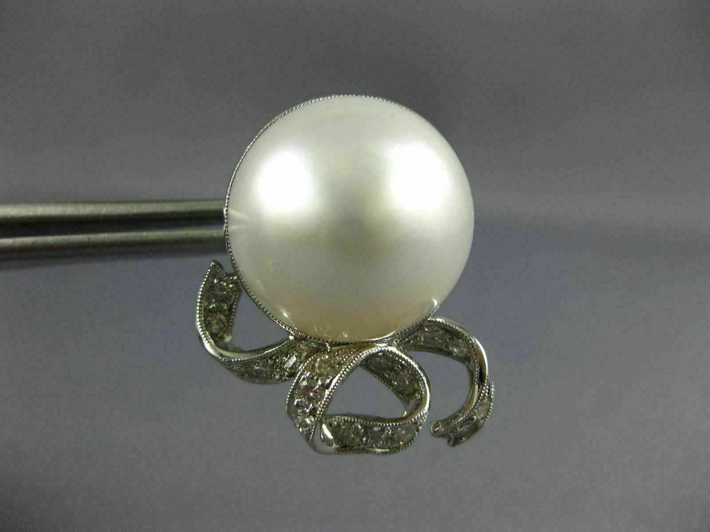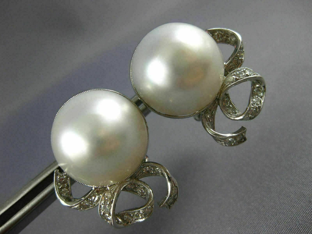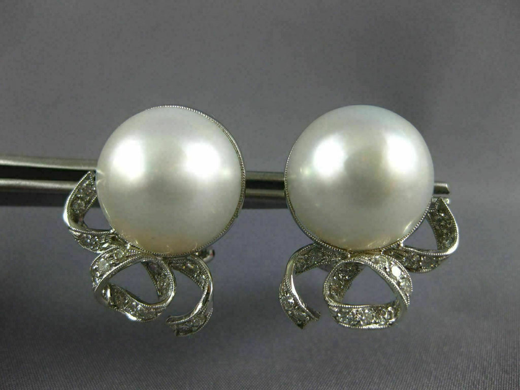 ESTATE EXTRA LARGE .83CT DIAMOND & AAA PEARL 18K WHITE GOLD BOW CLIP ON EARRINGS