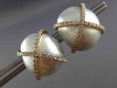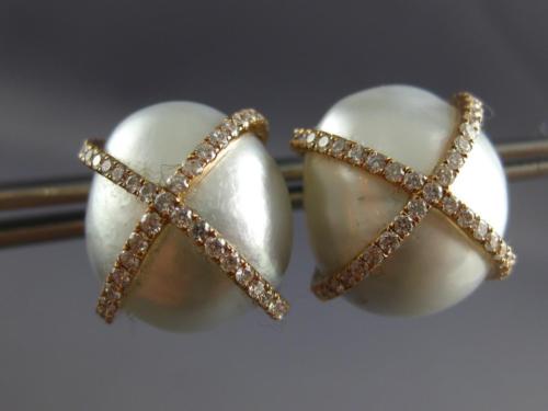 ESTATE EXTRA LARGE 18KT ROSE GOLD STUD EARRINGS. 3D X LOVE DESIGN. DIAMONDS ARE F/G COLOR, VSSI CLARITY .94 CARATS. AAA SOUTH SEA PEARLS ARE 16MM WIDE. MEASURES 16mm X 17mm. WRITTEN APPRAISAL AVAILABLE. COMES IN A PRESENTABLE GIFT BOX.