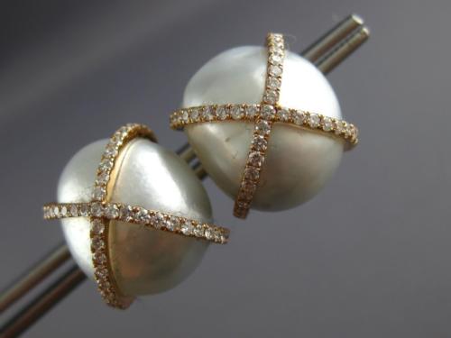 ESTATE EXTRA LARGE .94CT DIAMOND & AAA SOUTH SEA PEARL 18K ROSE GOLD 3D EARRINGS