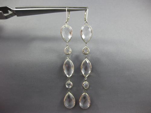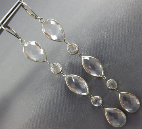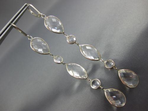 ESTATE EXTRA LARGE 14KT WHITE GOLD HANGING EARRINGS. 3D MULTI SHAPE DESIGN. FEATURES AAA ROUND MARQUISE AND PEAR SHAPE CRYSTAL. MEASURES 90mm X 11mm. WRITTEN APPRAISAL AVAILABLE. COMES IN A PRESENTABLE GIFT BOX.