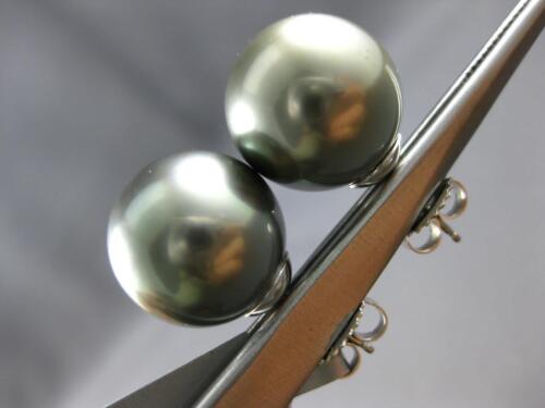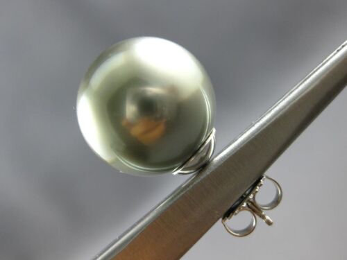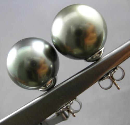 ESTATE EXTRA LARGE 14KT WHITE GOLD STUD EARRINGS. 3D CLASSIC DESIGN. FEATURES AAA TAHITIAN PEARLS. MEASURES 14mm WIDE. WRITTEN APPRAISAL AVAILABLE. COMES IN A PRESENTABLE GIFT BOX.
