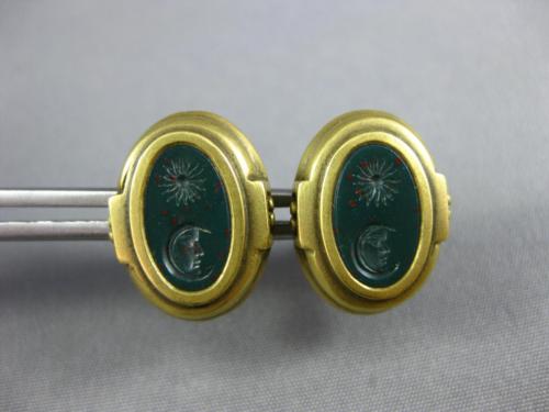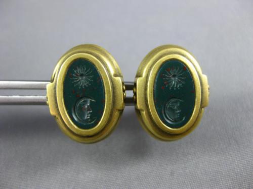 ESTATE KIESELSTEIN CORD 18KT YELLOW GOLD EARRINGS. 3D CARVED OVAL DESIGN. FEATURES HEART STONE. MEASURES 17mm X 13mm. WRITTEN APPRAISAL AVAILABLE. COMES IN A PRESENTABLE GIFT BOX.