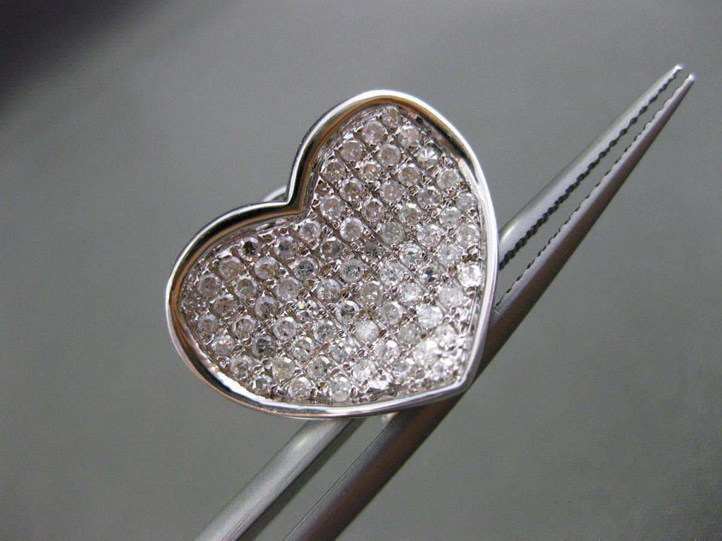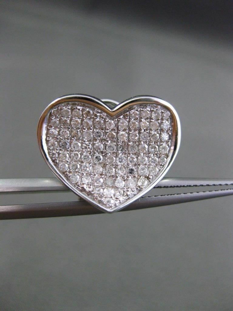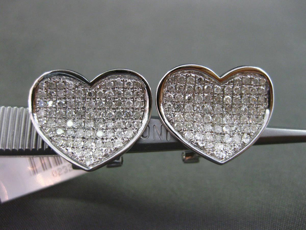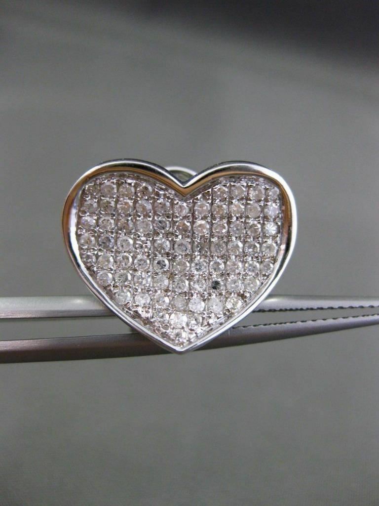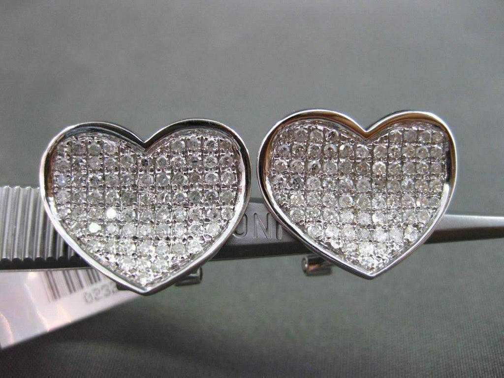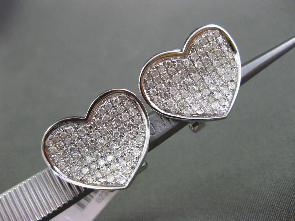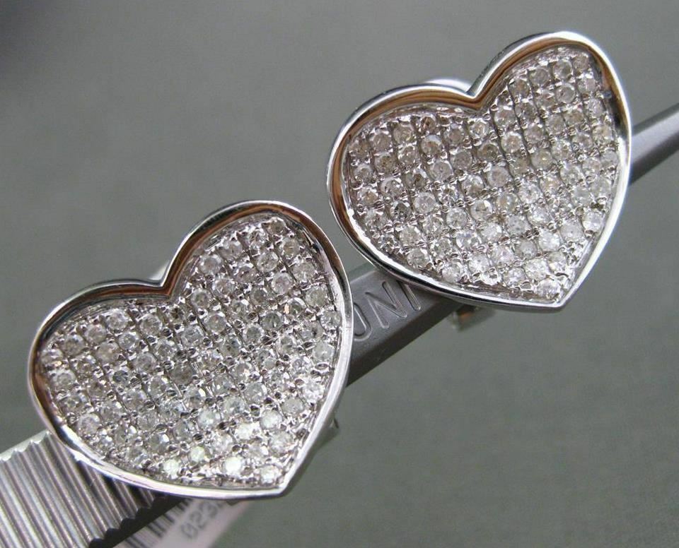 ESTATE LARGE 1.03CT DIAMOND 14KT WHITE GOLD 3D PAVE CURVED HEART LOVE EARRINGS