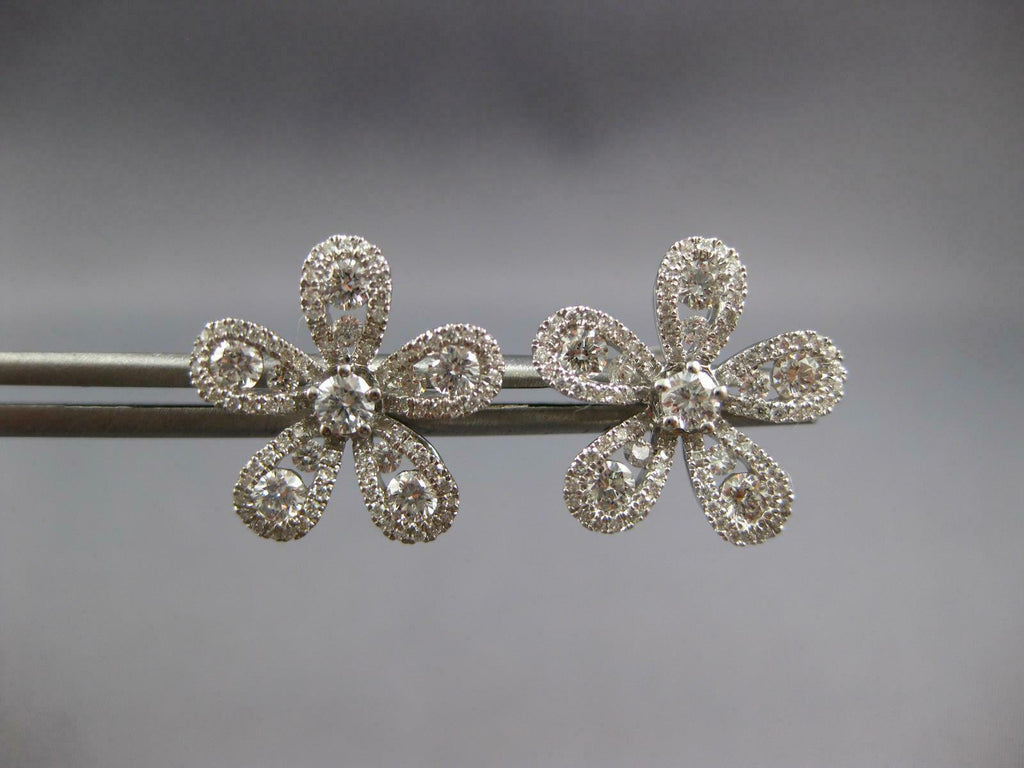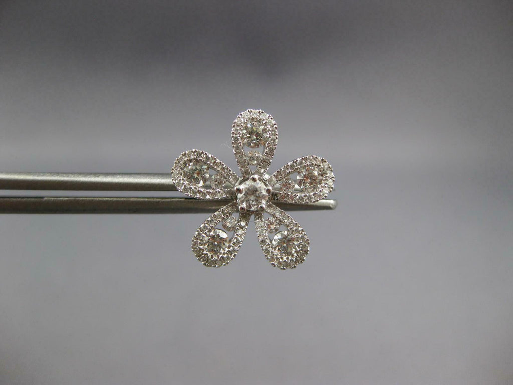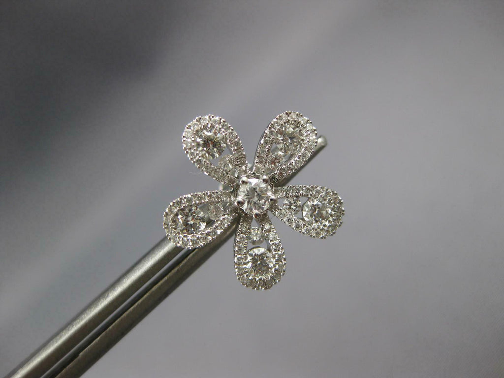 ESTATE LARGE 1.05CT DIAMOND 14KT WHITE GOLD 3D CLASSIC FLOWER STUD EARRINGS