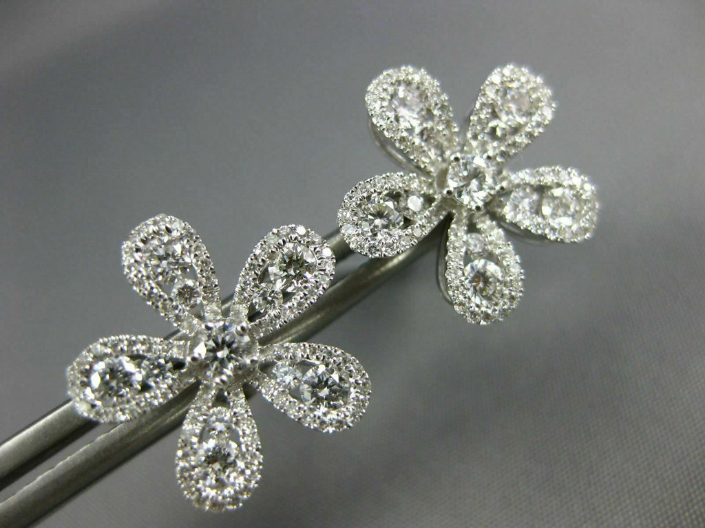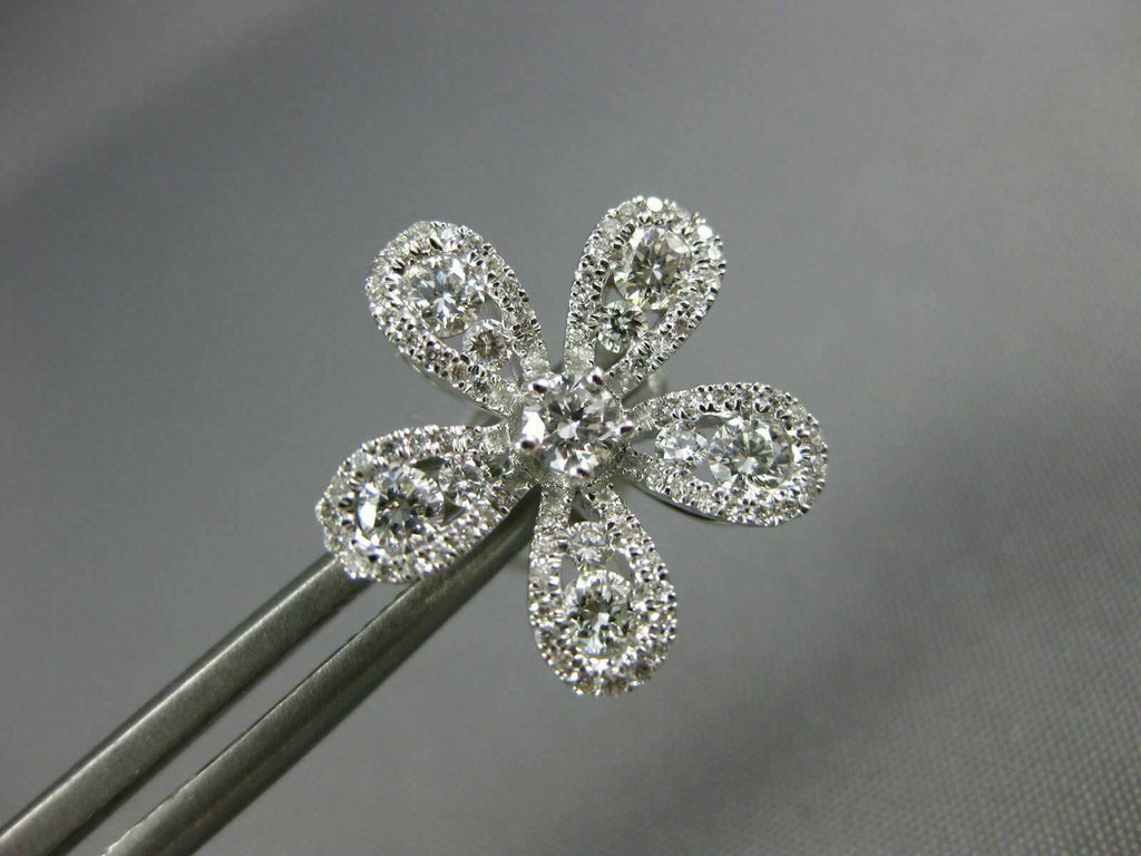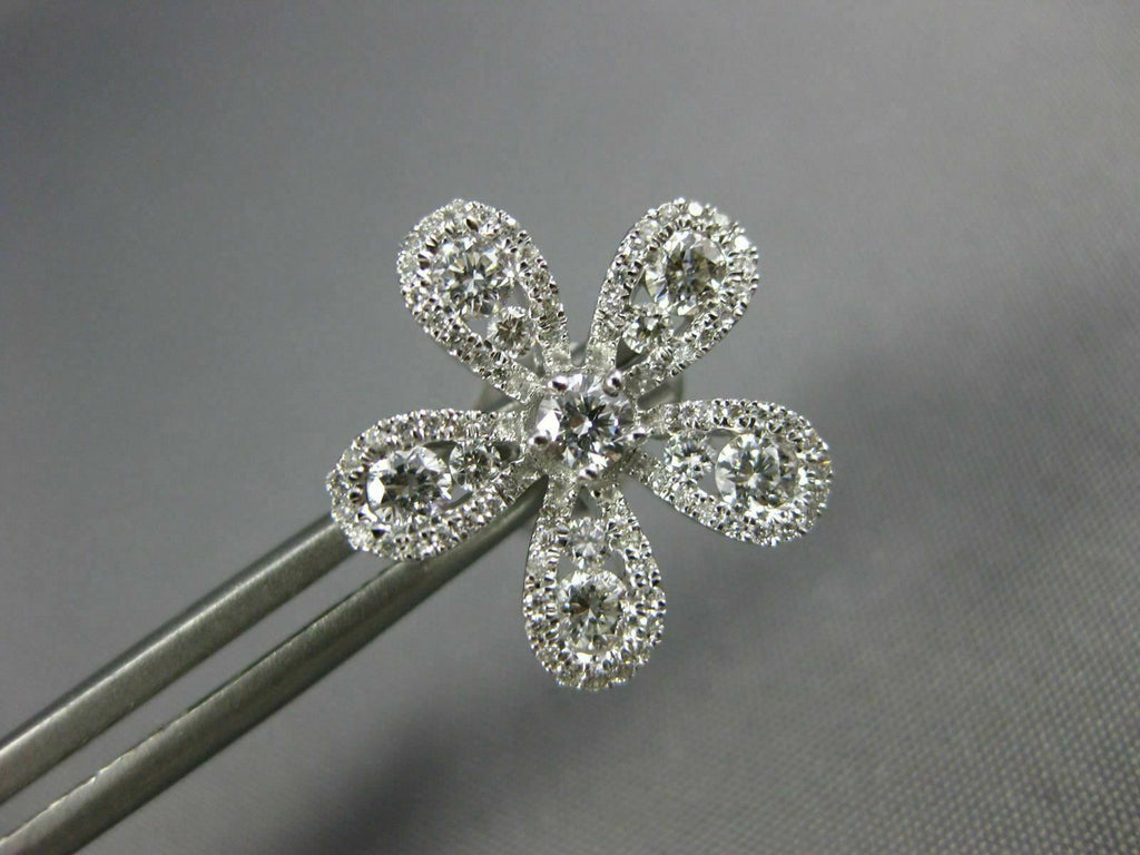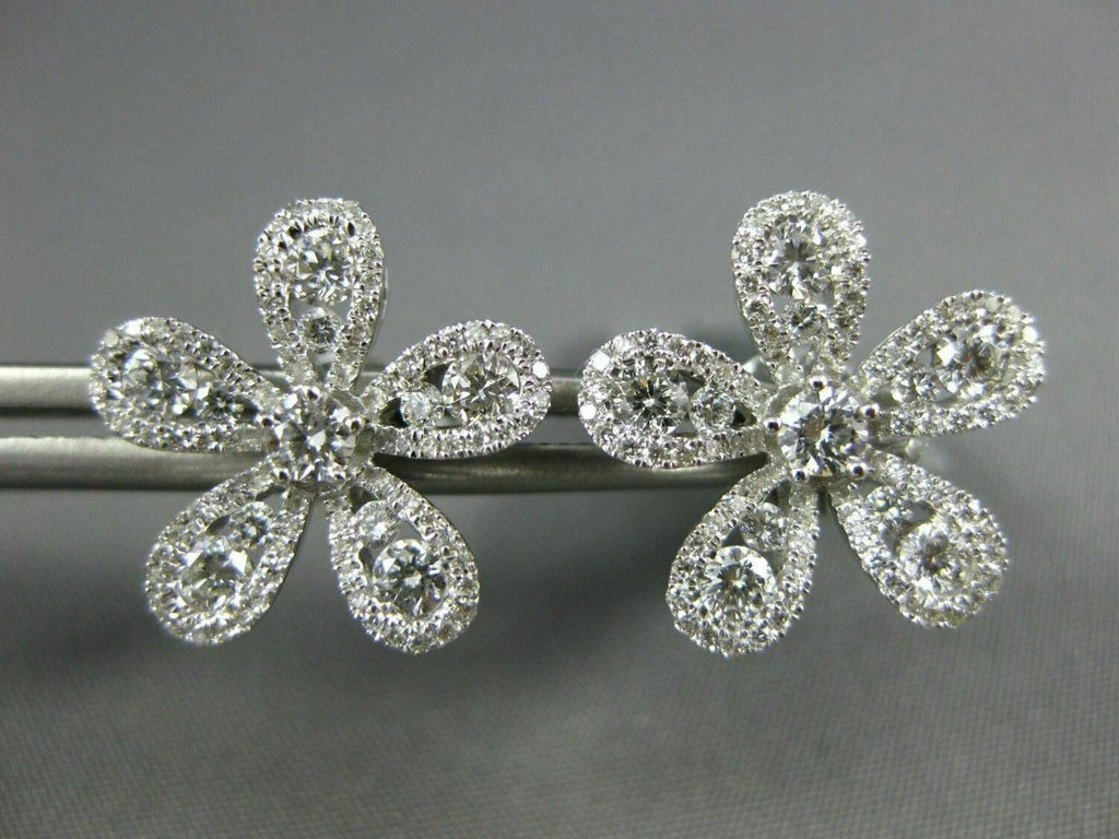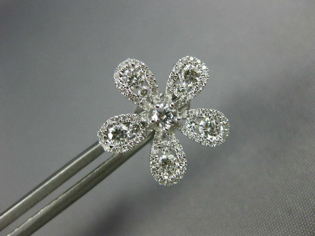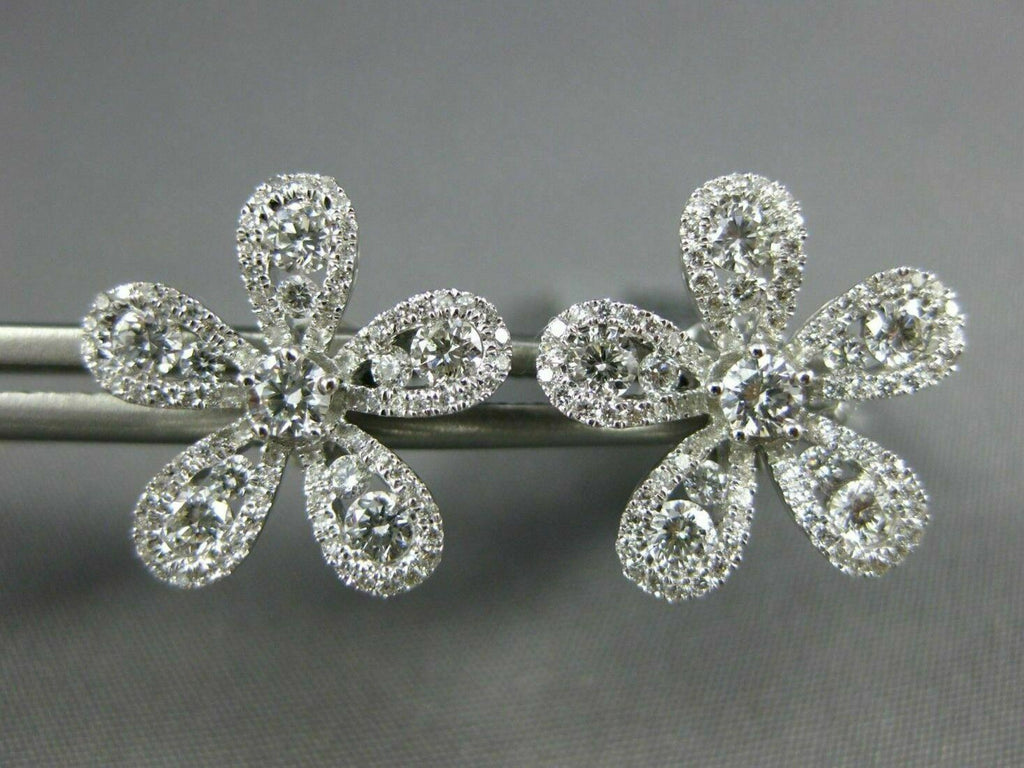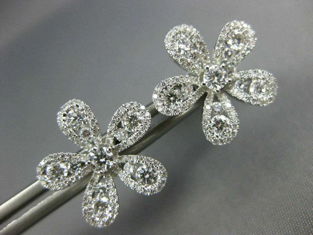 ESTATE LARGE 1.05CT DIAMOND 18KT WHITE GOLD 3D FLOWER CLASSIC STUD EARRINGS