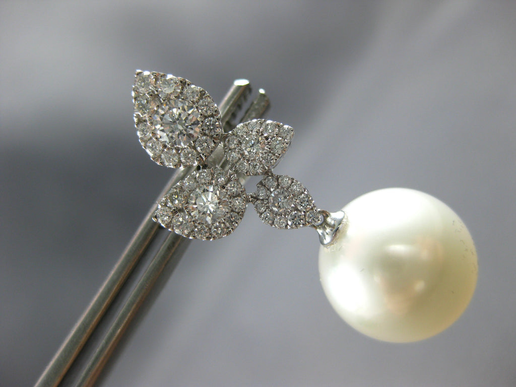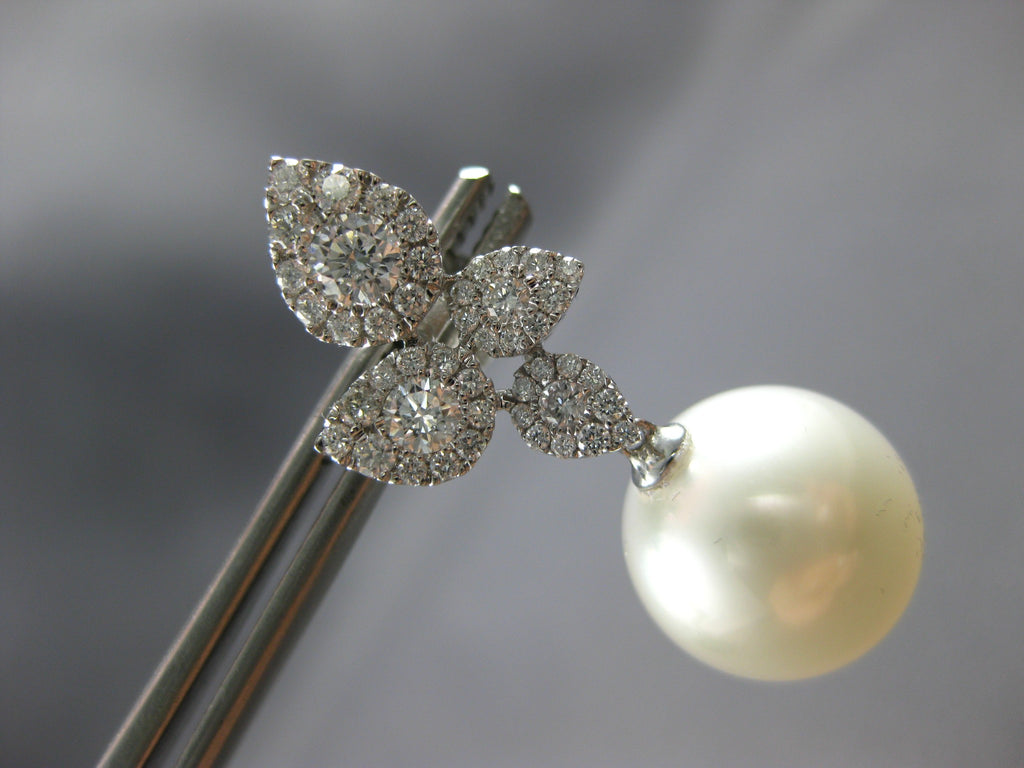 ESTATE LARGE 1.05CT DIAMOND & AAA SOUTH SEA PEARL 18K WHITE GOLD 3D MULTI LEAF EARRINGS