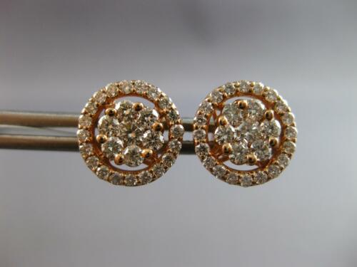 ESTATE LARGE 1.06CT DIAMOND 14KT ROSE GOLD 3D CLASSIC FLOWER HALO STUD EARRINGS