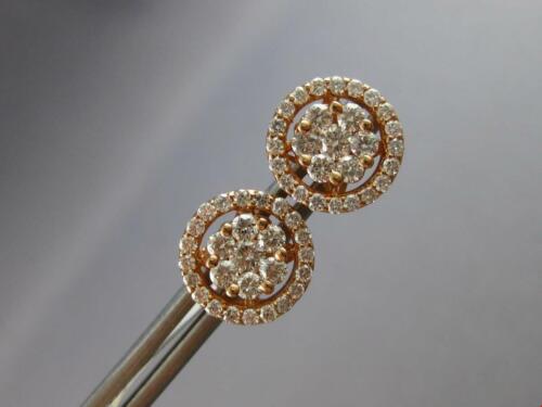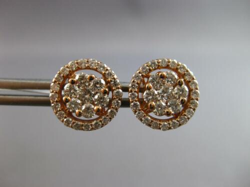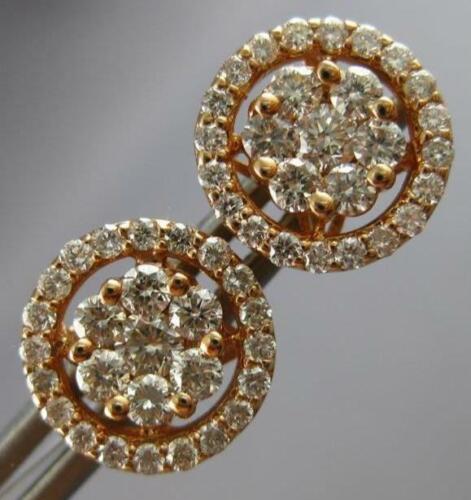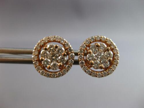 ESTATE LARGE 14KT ROSE GOLD STUD EARRINGS. 3D CLASSIC HALO FLOWER DESIGN. DIAMONDS ARE F/G COLOR, VSSI CLARITY 1.06 CARATS. MEASURES 11mm WIDE. WRITTEN APPRAISAL AVAILABLE. COMES IN A PRESENTABLE GIFT BOX.