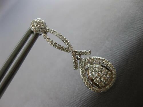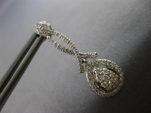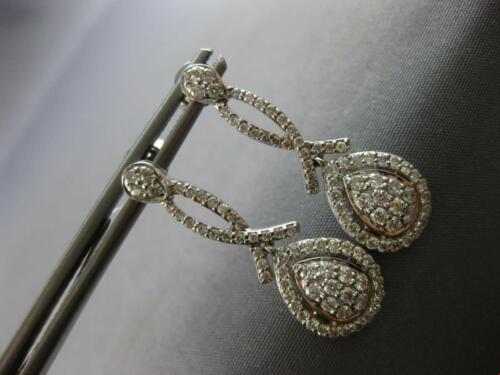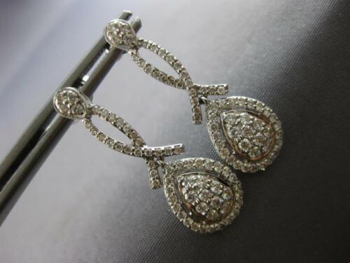 ESTATE LARGE 1.09CT DIAMOND 14K WHITE GOLD 3D CLUSTER TEAR DROP HANGING EARRINGS