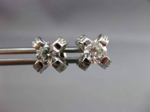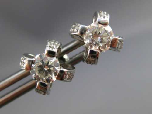 ESTATE LARGE 1.10CT DIAMOND 14KT WHITE GOLD SOLITAIRE FLOWER STUD EARRINGS #1409